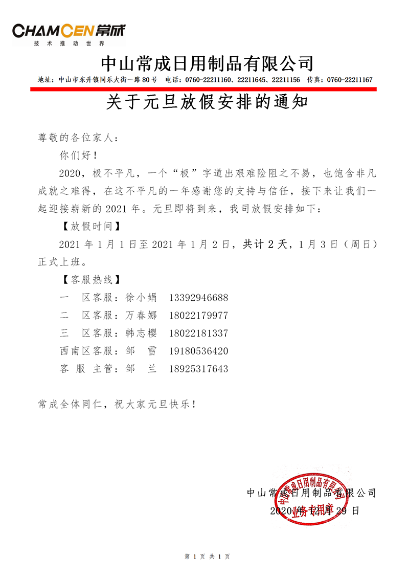 常成元旦放假通知: