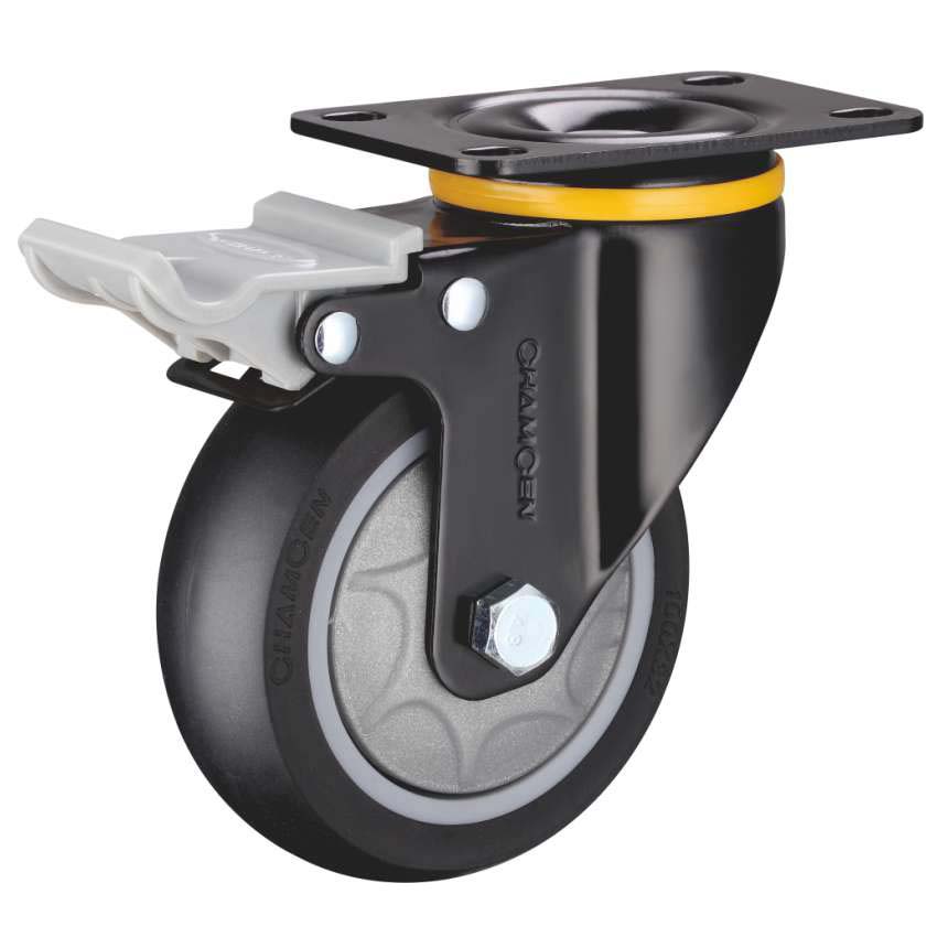 B6-4寸平底双刹黑色人造橡胶轮