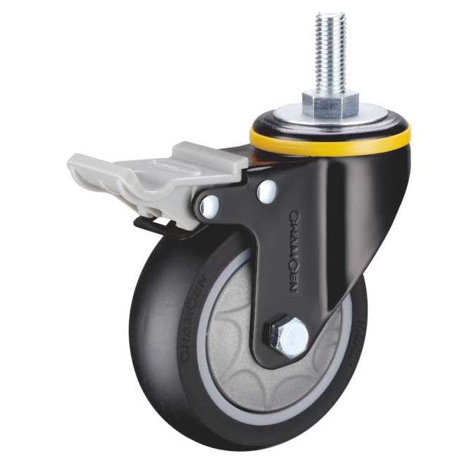 B6-4寸丝杆双刹黑色人造橡胶轮