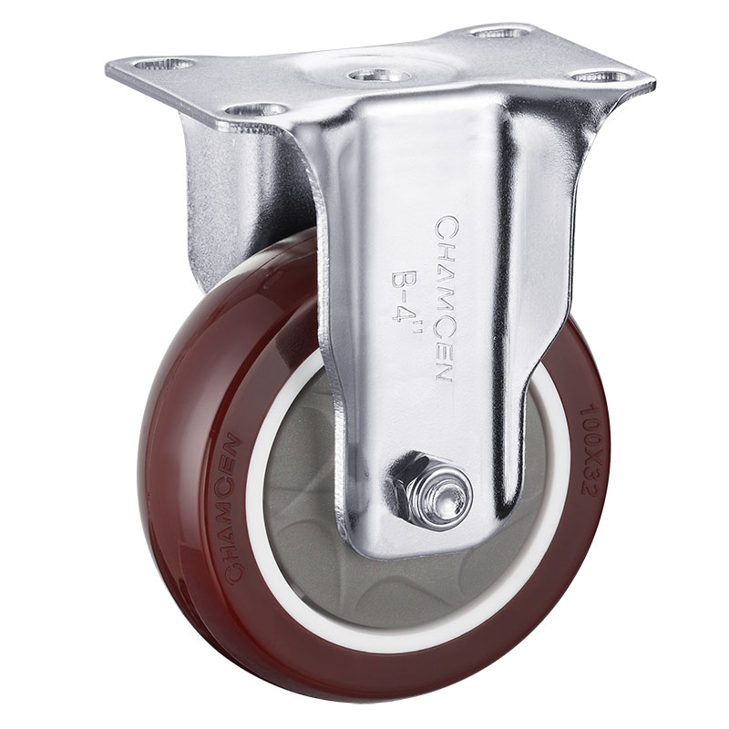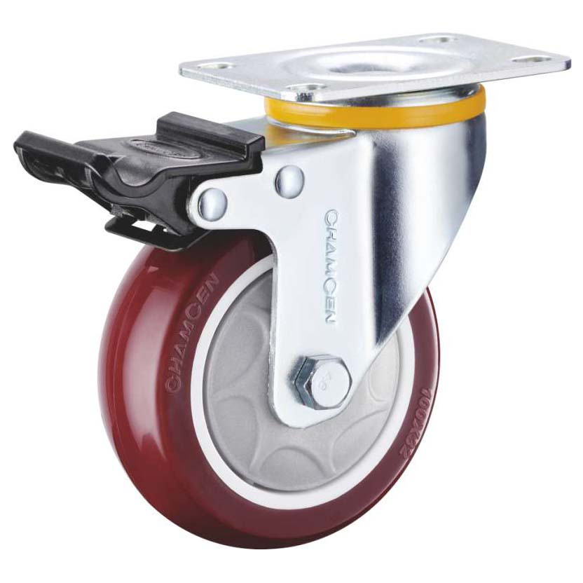 B3-2.5寸平底双刹枣红色聚氨酯轮