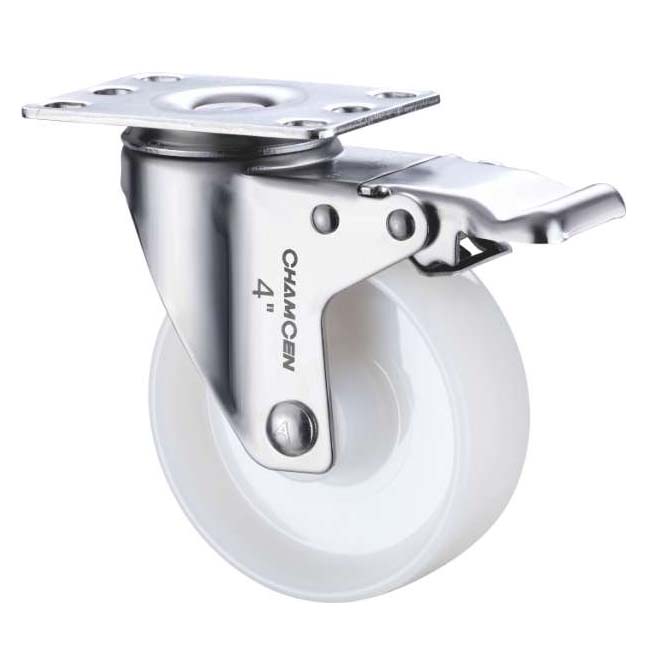 BB1-4寸不锈钢双刹乳白色尼龙轮