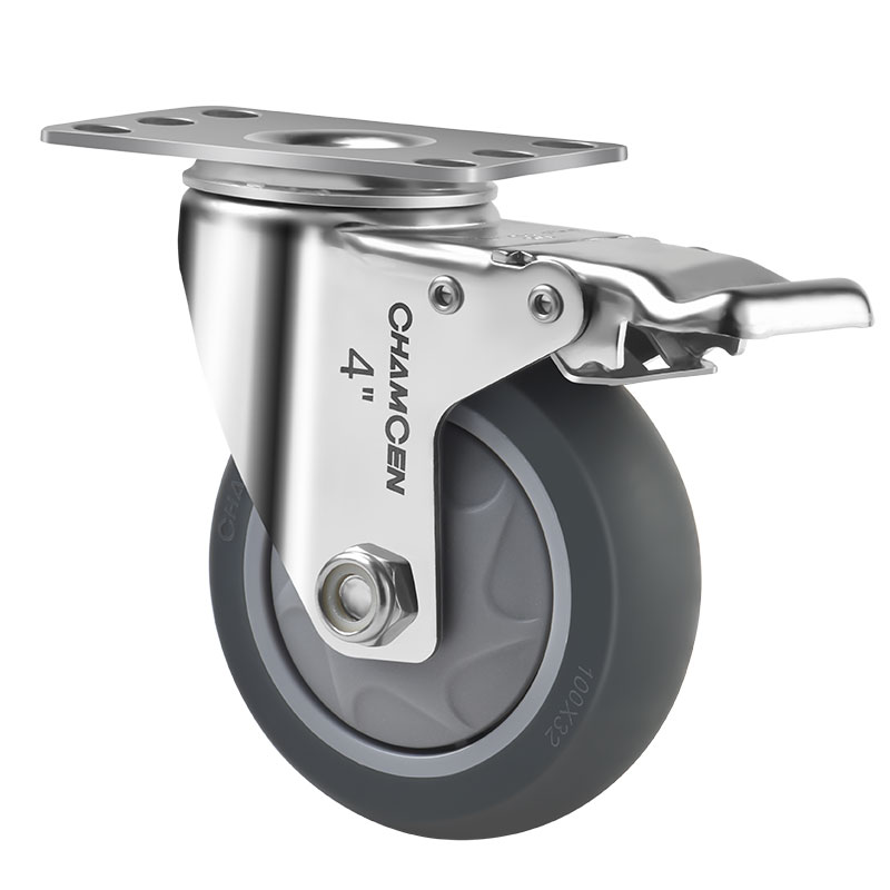 BB3-4寸不锈钢双刹灰色人造橡胶轮