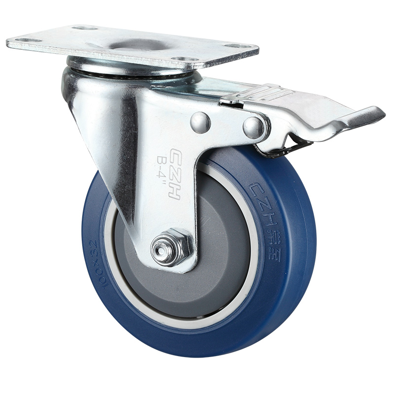 CZH-B2-4寸平底双刹蓝色热塑性弹性体轮