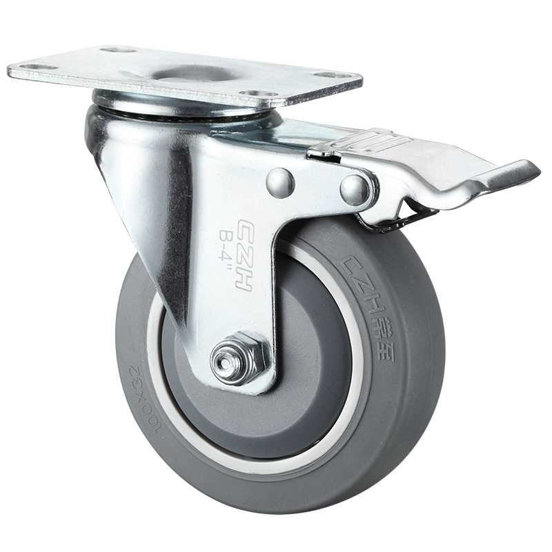 CZH-B4-4寸平底双刹灰色人造橡胶轮