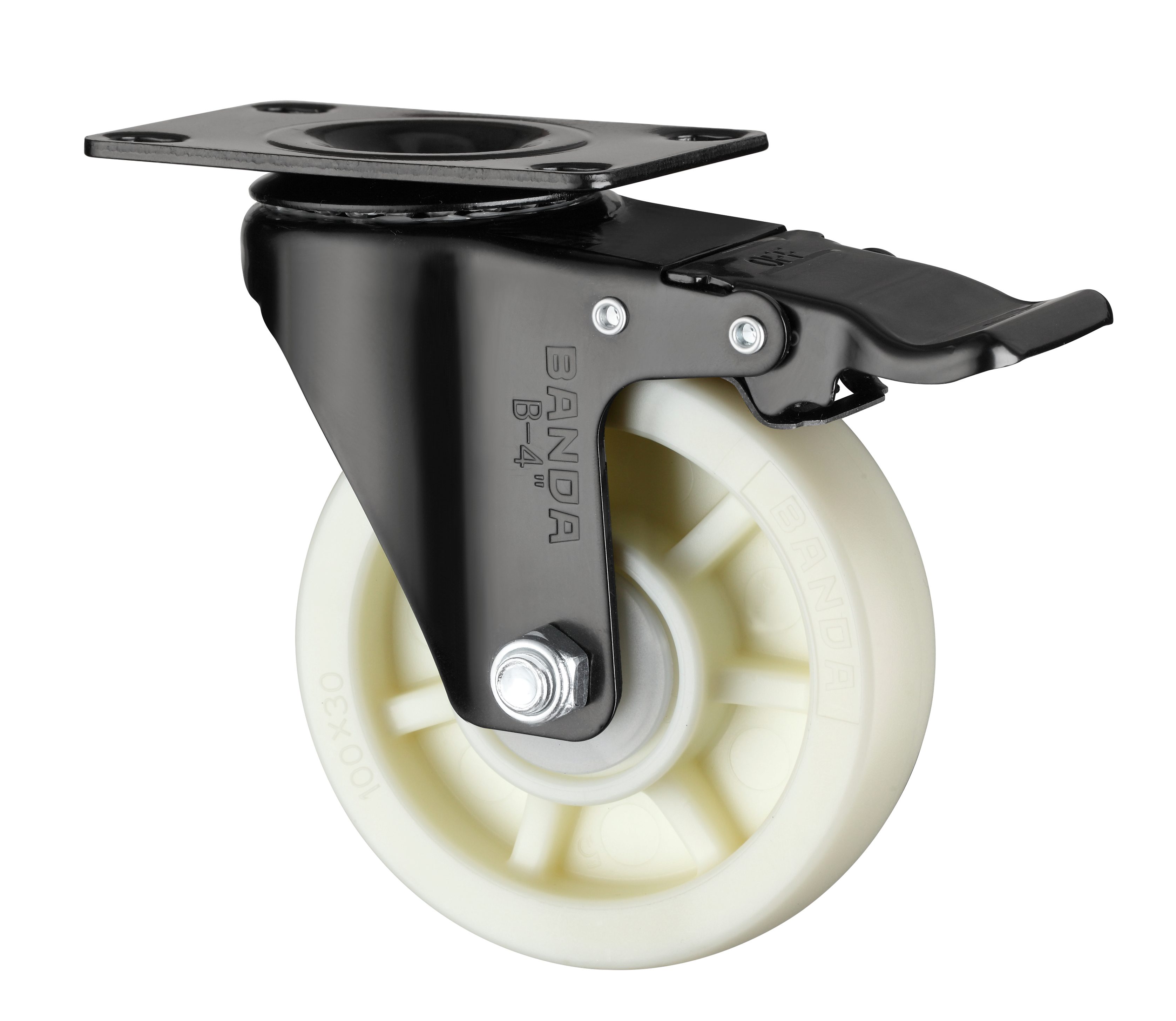 BANDA-B1-4寸中型平底五金双刹乳白色PP轮