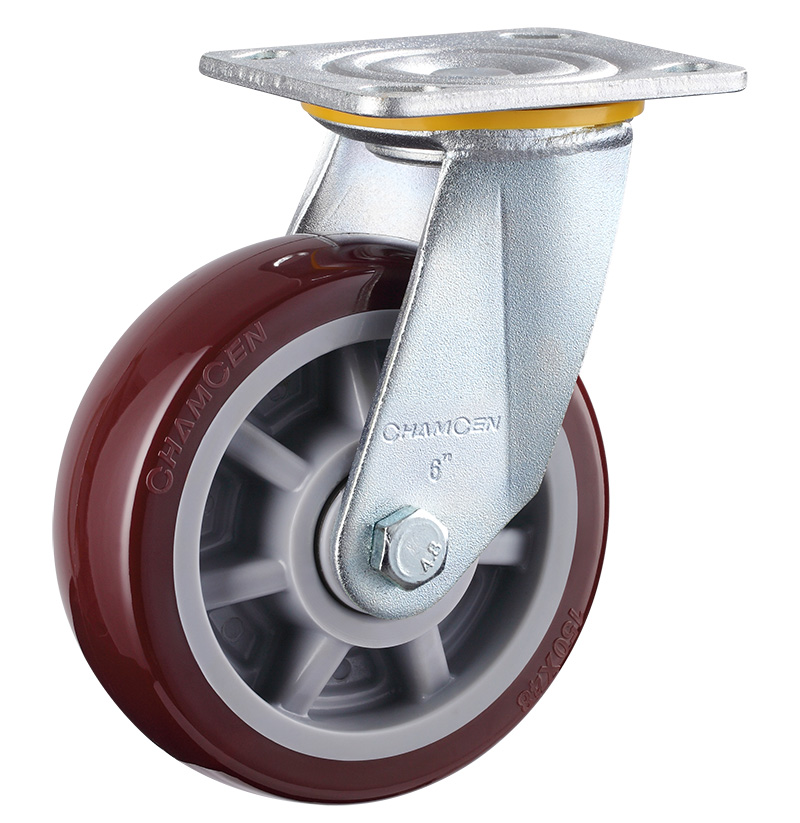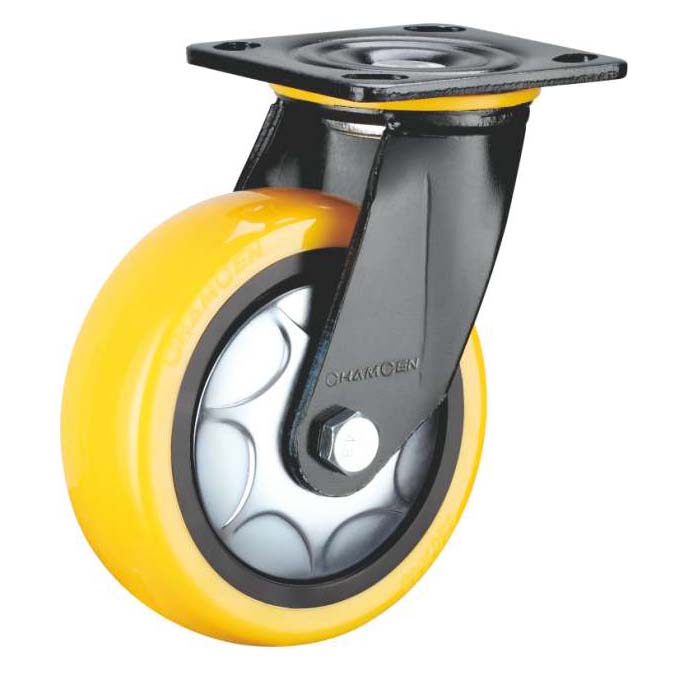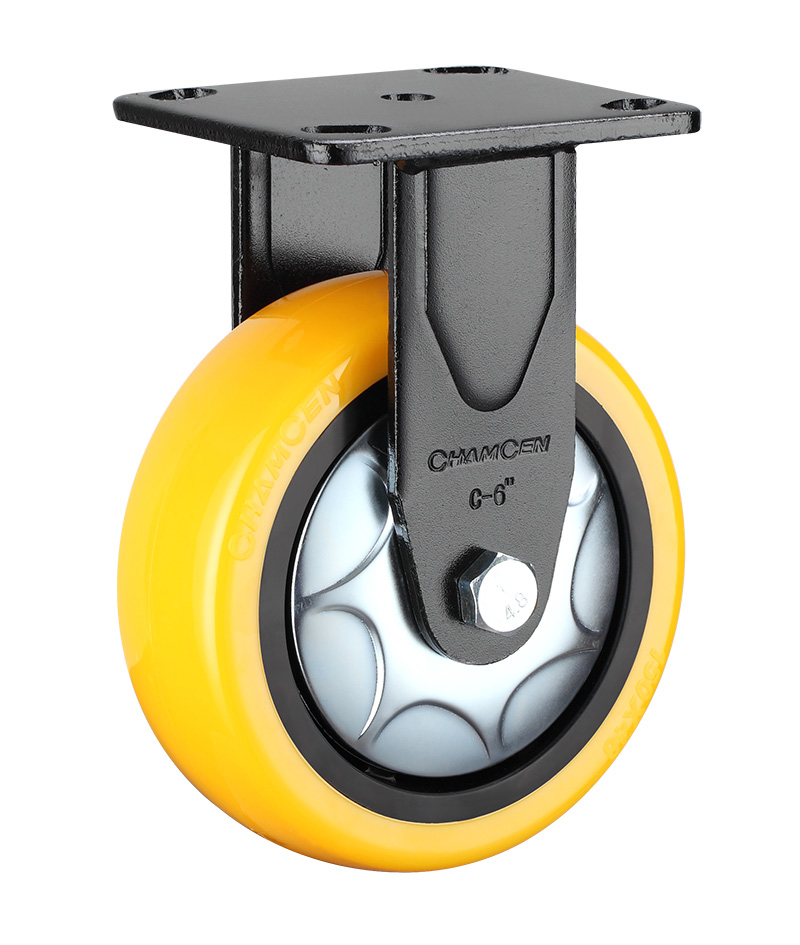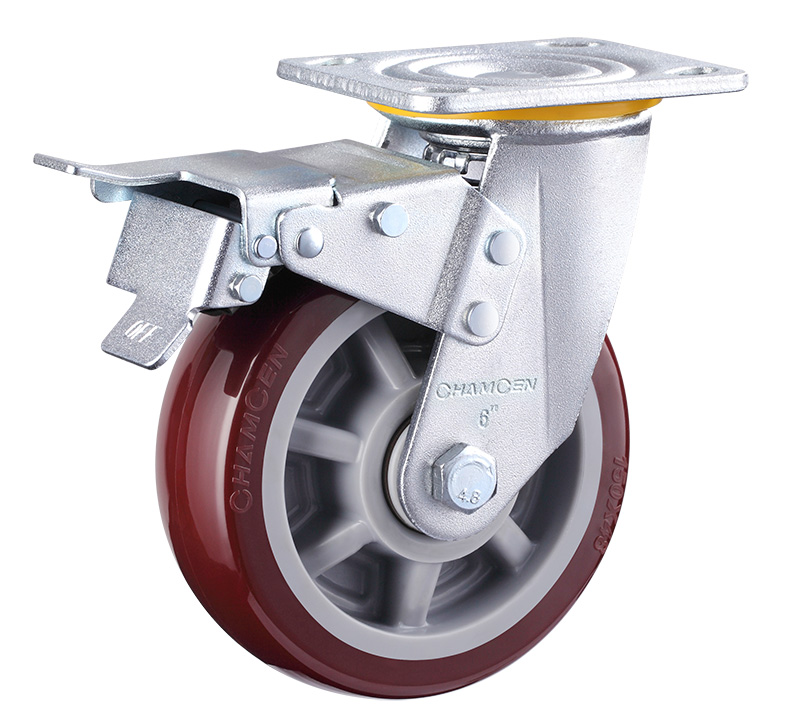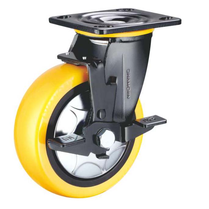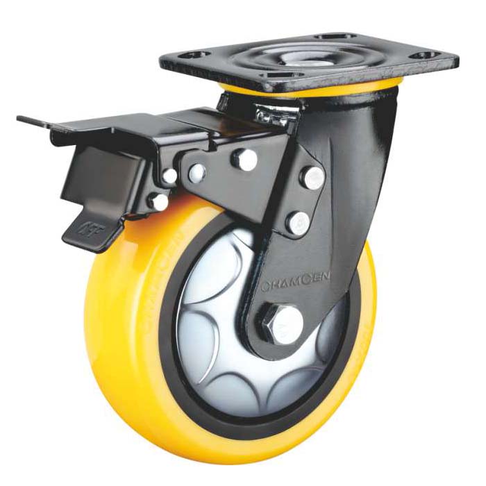 C5-6寸平底双刹橙黄色聚氨酯轮