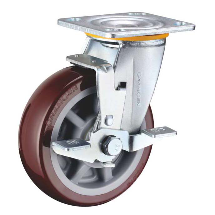 C5-8寸平底边刹橙黄色聚氨酯轮