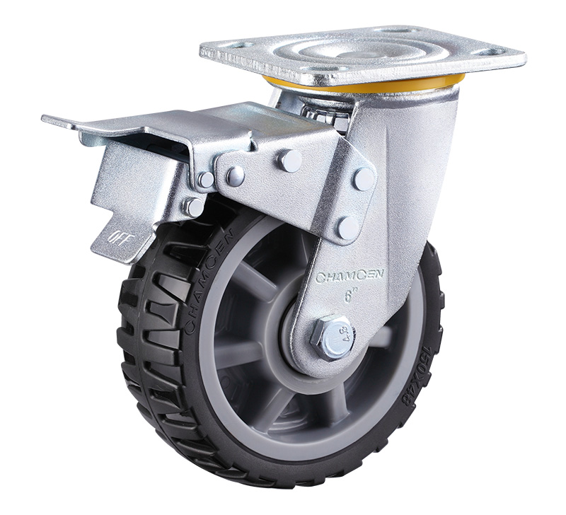 C13-6寸平底双刹黑色人造橡胶轮