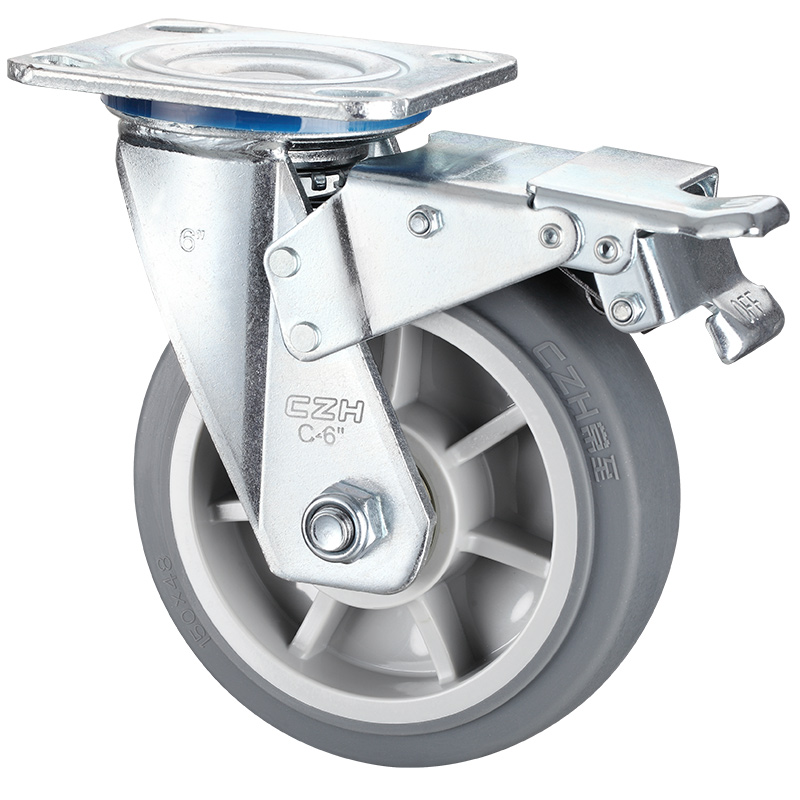 CZH-C4-6寸平底双刹灰色人造橡胶轮