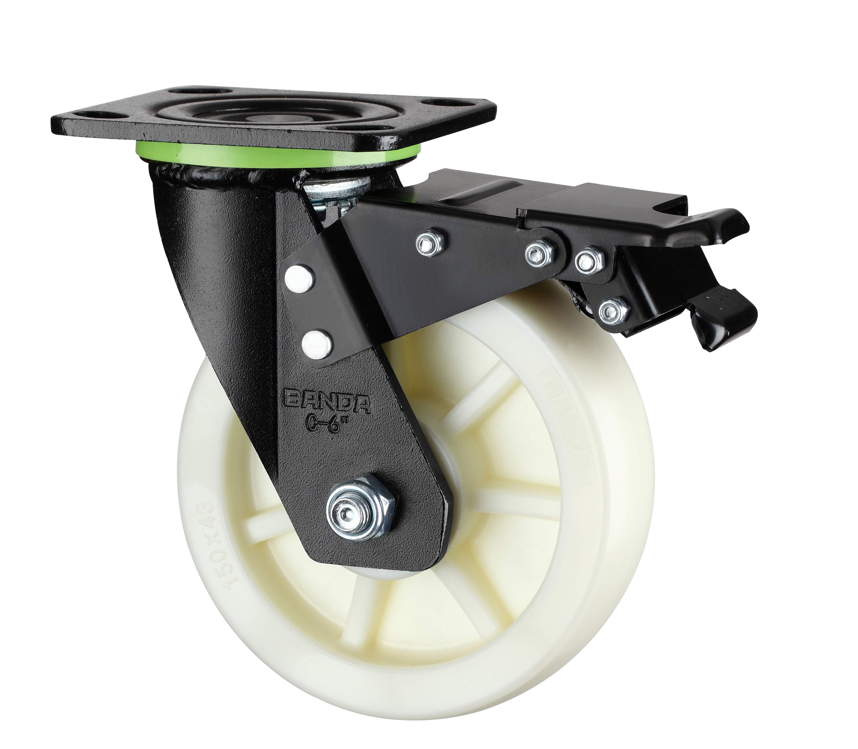 BANDA-C1-6寸重型平底五金双刹乳白色PP轮